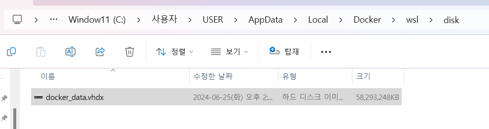 도커를 사용하여 oracle23ai, oracle19c 등등 설치하다보니 wsl2의 가상 볼륨인 docker_data.vhdx 용량이 무슨 60기가 까지 증가해 버렸다. 내 C 드라이브 가뜩이나 부족한데 얘가 너무 잡아먹고 있었고.. 이건 container 삭제 등으로 해결되지 않는 듯 보였다.(늘어나는 건 자동으로 늘어나더만..) 그래서 검색해서 찾아낸 방법으로 늘어간 가상볼륨 공간을 최적화 해보자. 먼저 vhdx 경로를 찾자. 난 everything 이라는 검색 프로그램으로 경로를 찾았다. cmd 창 실행하여 아래 명령어 실행PS C:\Users\USER> diskpart Microsoft DiskPart 버전 10.0.22621.1 Copyright (C) Microsoft Corporation. ..